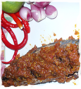 – haluskan cabe rawit merah, bawang merah dan sedikit garam.