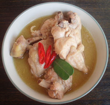 – masukan daun jeruk. tambahkan garam dan penyedap rasa bila perlu. masak hingga ayam benar2 matang.