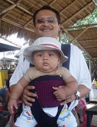 Setelah mampir masukin Laundry (kami punya langganan laundry di deket hotel, kalo nge-laundry di hotel mah bisa meninggal, secara sehari cucian baju anak2 bisa mencapai 1 koper ukuran sedang :-p). Abis itu ke Mc D, beli lunch buat Bianca. Terus mampir ke warung nasi campur langganan, beli lunch box buat Bapak, Ibu sama Yangti. Abis itu langsung ke Tanjung Benoa. Sampe sana siang, istirahat sebentar, sambil nonton orang2 yang main banana boat dan paraceiling, Bianca juga tadinya pengen nyobain, tapi Bapak Ibunya ga ada yang berani nemenin :-p