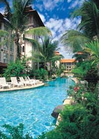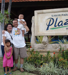 Setelah melewati e-consulting dengan Uncle Google, pilihan jatuh ke Sanur Paradise Plaza Hotel (formerly Raddison Sanur). Ternyata Hotelya cukup asik. Apalagi karena Ibu ambil kamar yang Double Pool View. Kamarnya punya 2 pintu. Yg satu ngadep ke garden. Satunya lagi, langsung ke kolam renang. Jadi kalo pintu belakang dibuka, hanya butuh kira2 10 langkah aja buat nyebur ke kolam renang. Bentuk kolam renangnya juga asik, memanjang dan sedikit berkelok. Yang paling seneng tentunya Bianca. Setiap hari bisa 2x nyebur ke kolam renang. Dan karena pool yang di depan kamar kami kedalamannya cuman 75 cm, jadi Bianca bisa main2 sendiri di situ. Kami bisa ngawasin dari kamar.