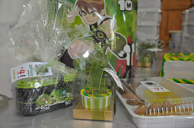 tahun ini benaia lagi kerajingan sama ben 10. jadi pernak pernik ulang tahunnya kemarin juga minta semuanya serba ben 10. mulai dari kue ulang tahun, goodies, sampe baju yang dipake buat acara tiup lilinnya juga semua serba ben 10. kalau ada yang bisa ngintip underwear yang dipake bebe, itu juga gambarnya ben 10 😀