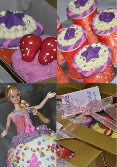 tahun ini requestnya hanya minta dibuatkan barbie cake buat kue ulang tahunnya dan beberapa goodies buat sahabat2 ceweknya di sekolah. perasaan saya antara seneng sama sedih juga… seneng karena kerepotan jadi berkurang. sedih karena saya jadi kehilangan moment2 spesial nyiapin acara ulang tahunnya. untung saya masih punya stock 2 anak balita 😀