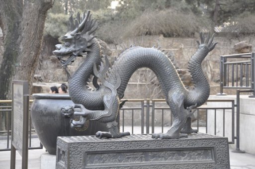di pintu masuk dipajang 2 patung tembaga, masing2 berbentuk dragon dan phoenix. dragon adalah lambang sang emperor. sementara phoenix adalah sang empress.