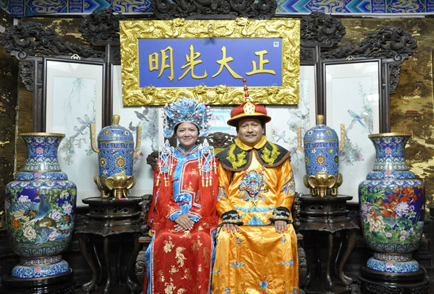 sebelum pulang, kami sempet mampir ke sebuah kedai foto. di sana kita bisa sewa kostum a la emperor dan empress. kalau ga salah, dengan bayar rmb 20/orang, kita bisa berfoto sepuas2nya pake kostum sewaan itu tapi dengan menggunakan kamera kita sendiri. ya, ga sepuas2nya banget sih, soalnya kan waktunya dijatah juga…
