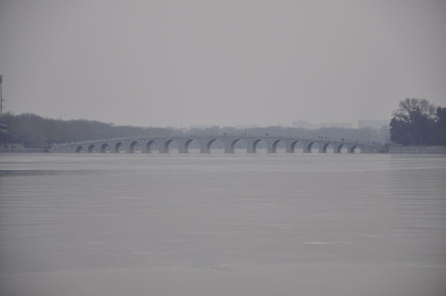 kalau kita datang ke summer palace di musim panas kita bisa menyeberangi danau kunming dengan menggunakan boat atau menyusuri jembatan The Seventeen Arch Bridge dan mengunjungi Tower of the Fragrance of the Buddha yang ada di tengah danau. tapi karena waktu itu musim dingin, jadi kami hanya menikmati pemandangan kuil itu dari kejauhan saja.