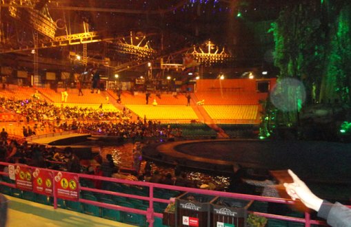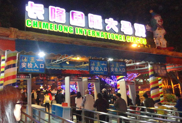 saat ini chimelong international circus ini merupakan pertunjukan circus profesional terbesar di dunia. sejak dimulainya tahun 2000 yang lalu, chimelong international circus ini tidak henti2nya menggelar berbagai pertunjukan circus yang spektakuler. asli, saya kagum berat dengan berbagai atraksi di pertunjukan circus malam itu. lighting yang memukau. tata panggung yang cantik. pemain2 akrobat yang kadang bikin jantung mau copot. badut2 yang berulang kali mengocok perut. hewan2 yang luar biasa terlatih. dan penari2 yang seksi. bikin waktu pertunjukan yang dua jam lamanya itu ga kerasa lama sama sekali.