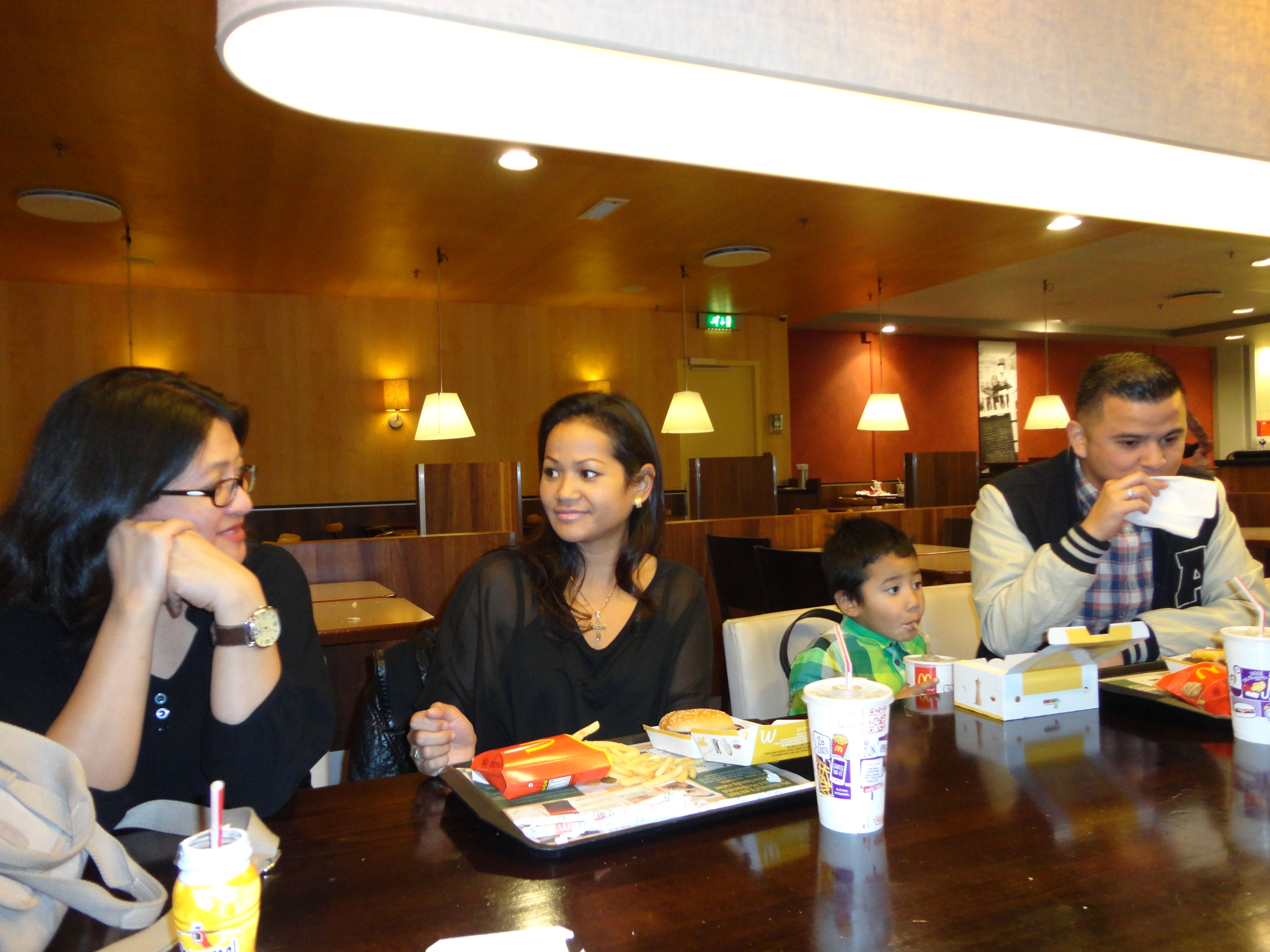 Saatnya reunian ngebut sama Ecy, Steve, Nathan dan Jojo… Setelah ngiter2 muterin stasiun untuk nyari tempat makan, akhirnya kami dapet kursi di Mc Donald. Iyaaa…, jauh2 ke negeri orang makannya malah di Mc. D. Hehehe… Soalnya, jam 5 sore tet, semua toko dan restoran di stasiun itu tutup. Si Mc Donald juga sebenernya sudah dalam rangka mau kukut2, tapi masih bersedia terima last order dari kami.