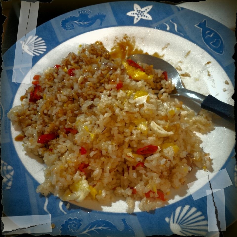 Jaman saya masih sekolah dulu, Ibu saya selalu membiasakan kami sarapan sebelum berangkat sekolah. Dan karena keterbatasan kami saat itu, menu rutin yang selalu beliau suguhkan setiap pagi adalah nasi goreng polos ini. Tanpa lauk, sesekali pake telor kalau sedang ada stock nya. Kadang2 saya tambahkan kecap manis, hanya di separuh permukaannya saja.
