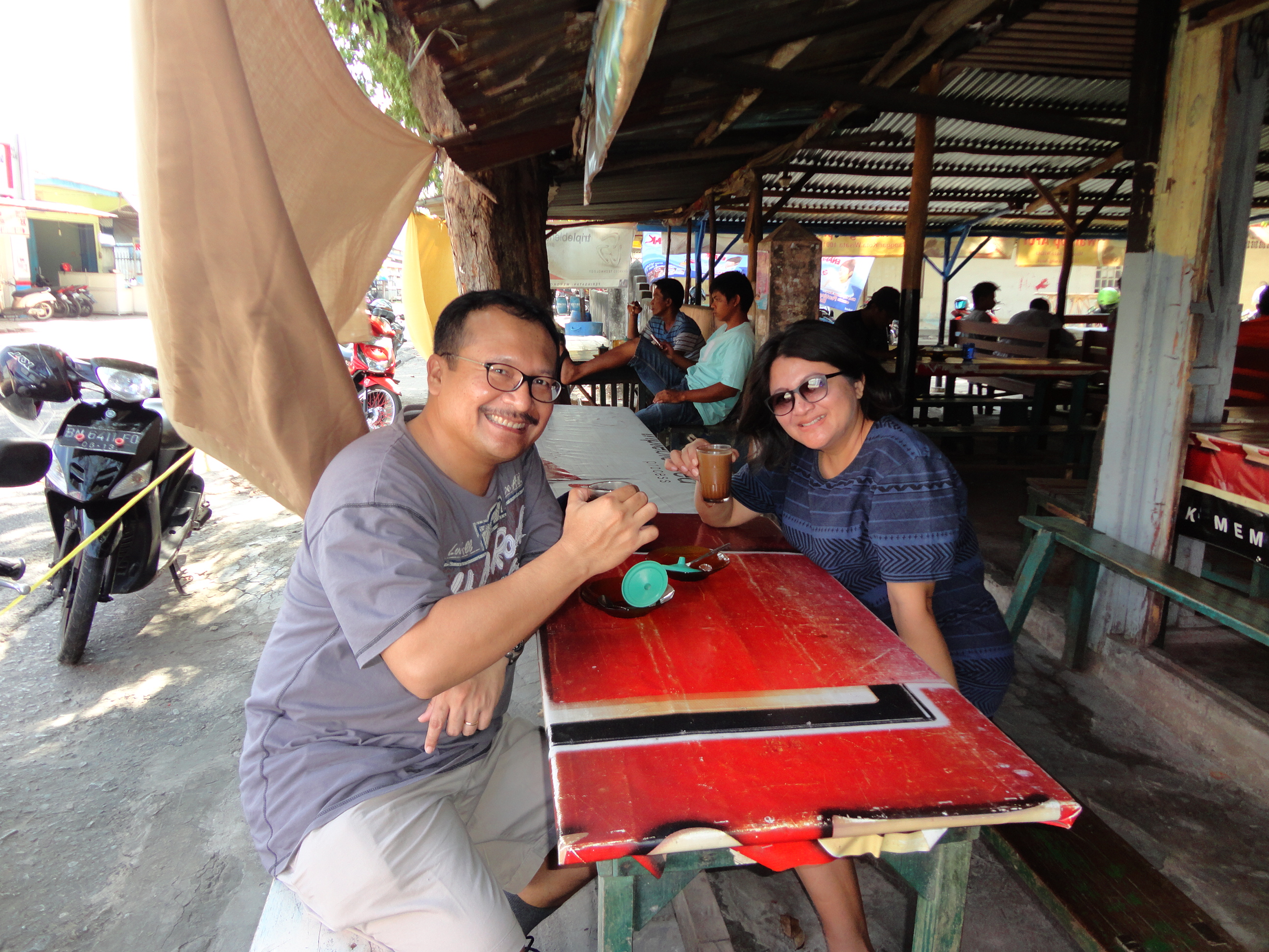 Sayang kami ga bisa nongkrong terlalu lama di warkop Afui, karena udara yang cukup panas siang itu bikin anak2 yang nunggu di mobil agak rewel. Next time pengen balik lagi ke Manggar untuk menikmati segelas kopi Belitung sambil ngobrol dan bersantai lebih lama…. 🙂