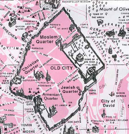 Kota tua Jerusalem terbagi menjadi 4 wilayah, masing2 Moslem Quarter, Christian Quarter, Jewish Quarter dan Armenian Quarter. Wilayah moslem quarter adalah yang terbesar, luasnya sekitar 300.000 m2. Walau pun namanya moslem quarter, tapi yang tinggal di area ini tidak semuanya muslim. Ada juga orang Kristen dan Yahudi yang tinggal di daerah ini.