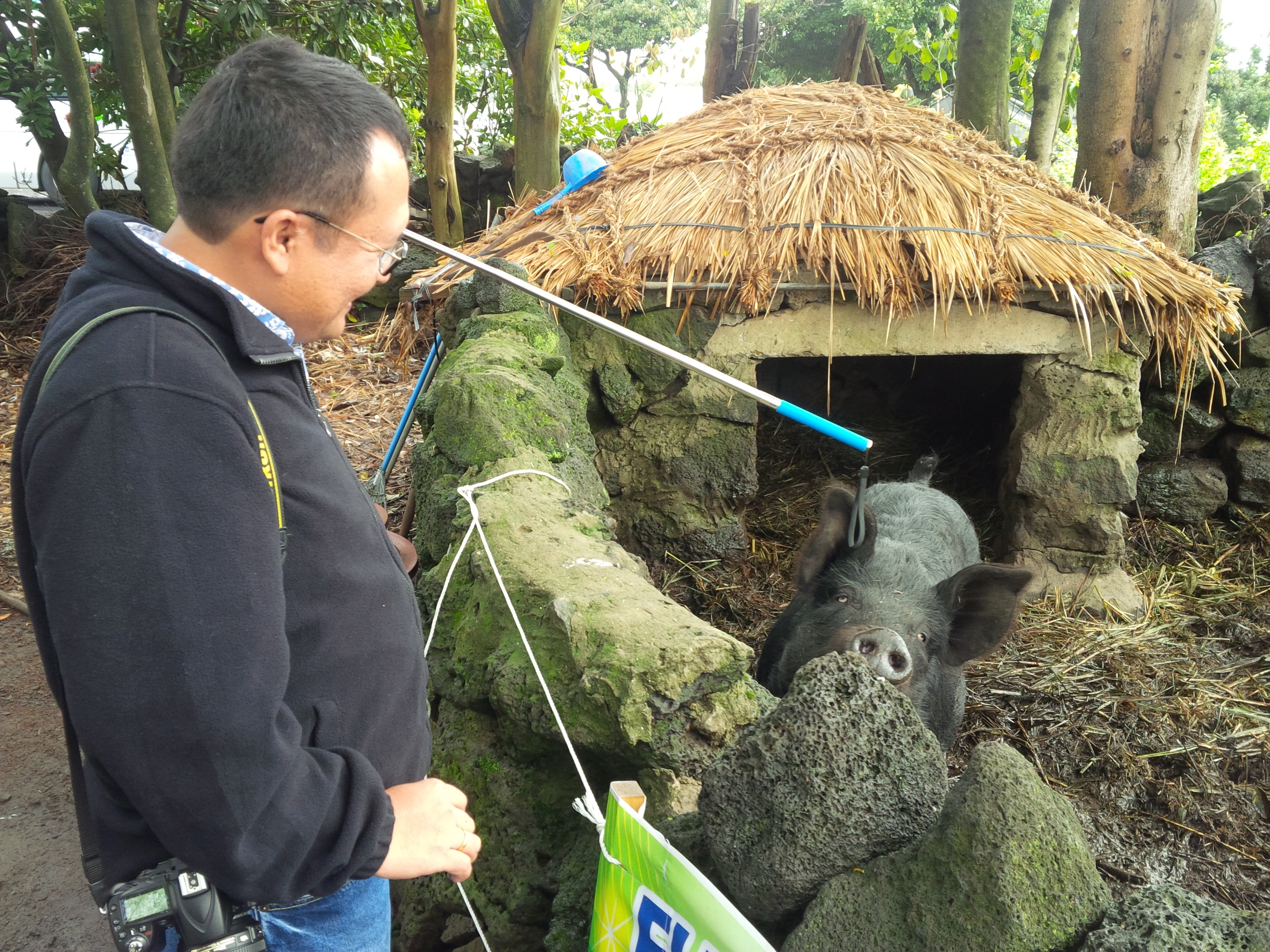 Hal menarik lain pada rumah penduduk Jeju adalah palang pintu terbuat dari kayu yang berfungsi sebagai pagar rumah mereka sekaligus sebagai penanda apakah pemiknya da di rumah atau ga.
